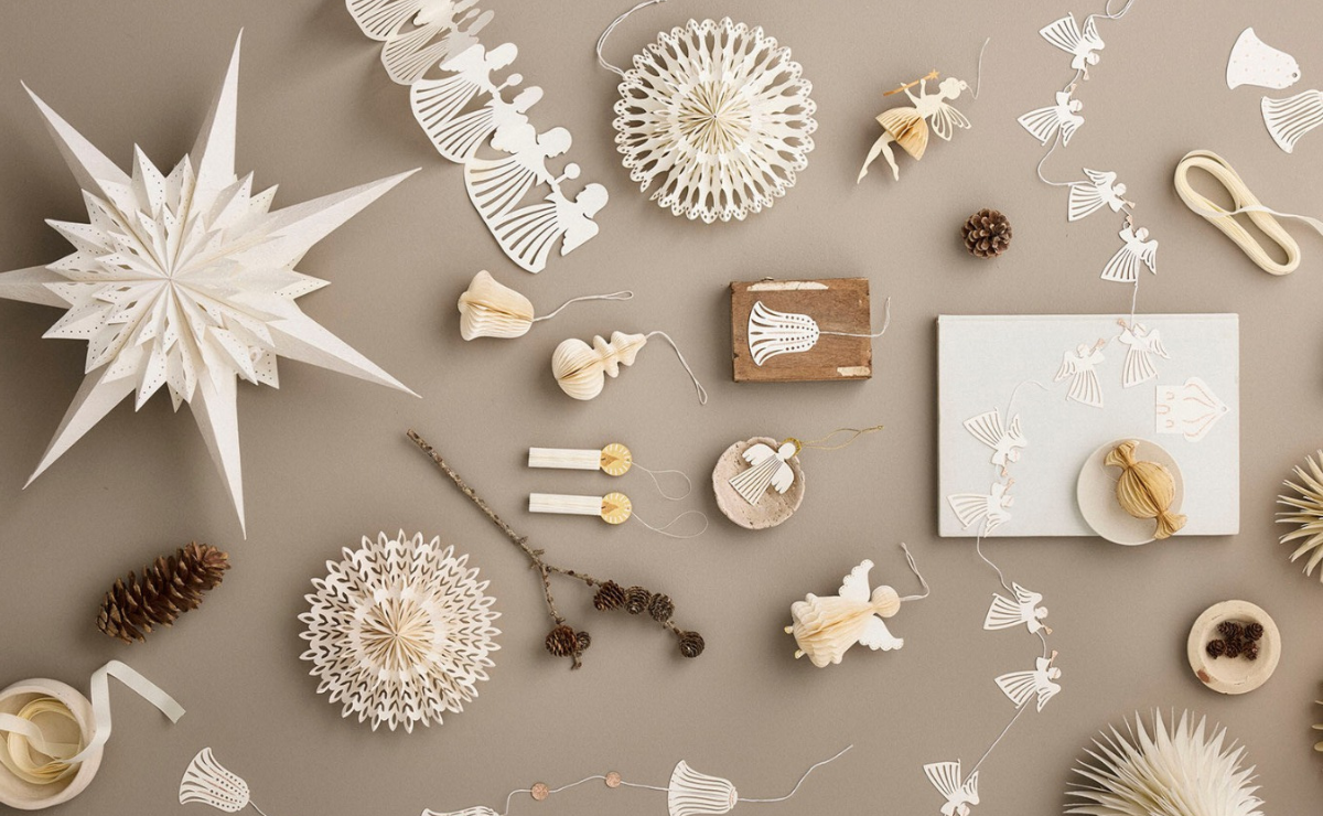 Se tem um material que nunca falta em casa é o papel, e ele pode render decorações de Natal lindas e econômicas. Com ele, dá para fazer flocos de neve para colar nas janelas, estrelas sanfonadas para pendurar na árvore, guirlandas com tiras coloridas e até pequenas árvores de mesa. Usar páginas de livros antigos ou revistas dá um toque vintage sem gastar nada. É simples, acessível e ótimo até para envolver as crianças nas criações.